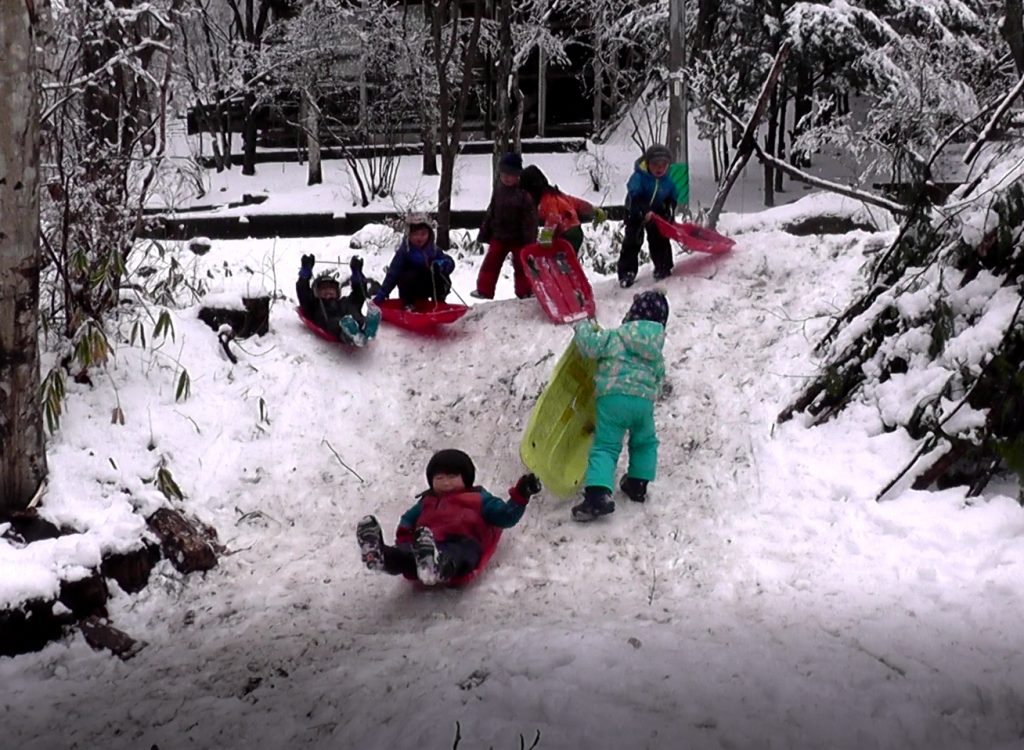 木々が芽吹き小鳥さえずるなか シャベルを手に泥んこ遊び