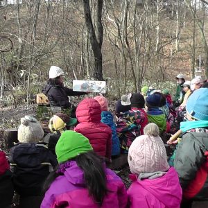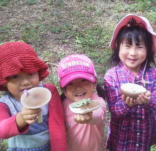 リュックサック背負って森にあつまる 今日もいっぱい遊ぼうね |